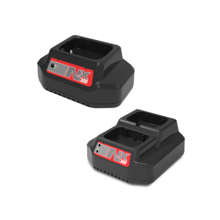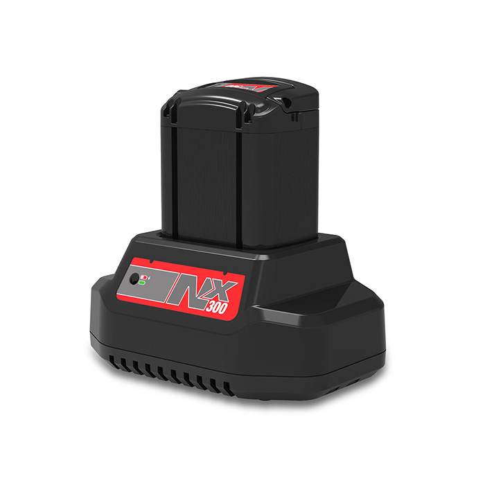 Batteria ricaricabile agli ioni di litio ad alte prestazioni NX300, con funzione di ricarica rapida e autonomia fino a 80 minuti.
